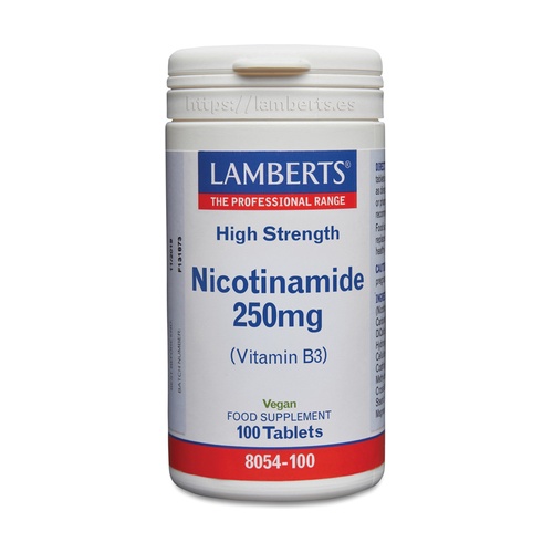 Nikotinamid 250 mg (vitamín B3) od Lamberts je vysoce účinný doplněk stravy, který přispívá k normální funkci nervového systému a k normální údržbě pokožky a sliznic. Stejně jako mnoho vitamínů skupiny B se podílí na metabolických procesech uvolňujících energii z potravy a přispívá ke snížení únavy a vyčerpání. Je také důležitý pro podporu normálního energetického metabolismu a normální psychické funkce.