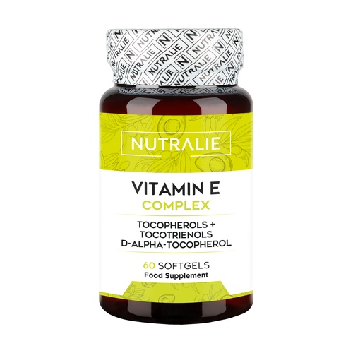 Forma vitamínu E s nejvyšší vitamínovou aktivitou, d-alfa-tokoferol, je v této formuli přítomna v balení 60 kapslí a poskytuje 108 mg vitamínu E na doporučenou denní dávku. Díky svému složení obsahuje Nutralie Vitamin E Complex 4 tokotrienoly, které se podle několika studií vstřebávají snáze než jednoduchý tokoferol, přítomný v jiných doplňcích vitamínu E.