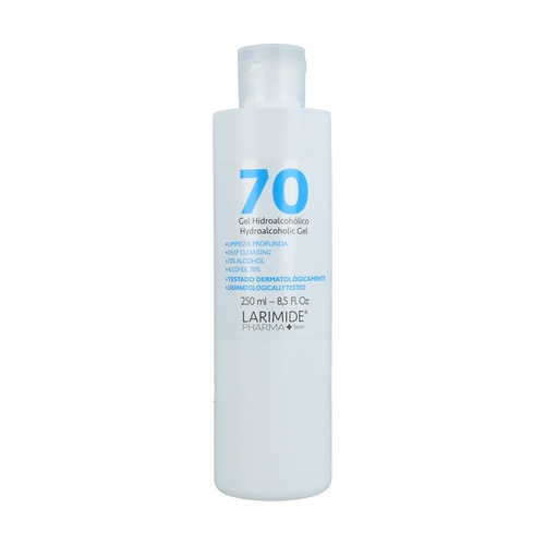 70 Gel na čištění rukou od Larimide pharma je hydroalkoholický gel pro hluboké čištění, ideální pro hygienu rukou v jakékoli situaci, kde je potřeba rychlé a účinné čištění bez vody.