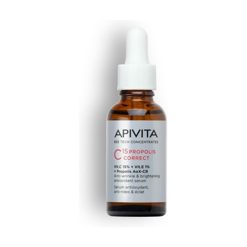 Korekční sérum C15 Propolis od Apivita, odhaluje sílu synergického anti-aging účinku vitamínu C, vitamínu E a patentovaného propolisu Aox-CR.
