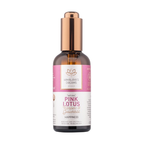 Tělový a obličejový olej Pink Lotus obsahuje růžový lotos, který má podle ájurvédy čisticí vlastnosti podporující duchovní a emocionální rovnováhu.