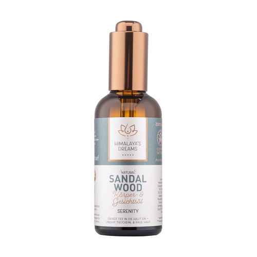 Tělový a obličejový olej Sandalwood Serenity udržuje vaši pokožku jemnou, pevnou a zářivou. Podle ájurvédy je santal osvěžující a uklidňující, což jej činí zvláště vhodným pro zmírnění zánětu, horka a podráždění a podporu duševní jasnosti a klidu.