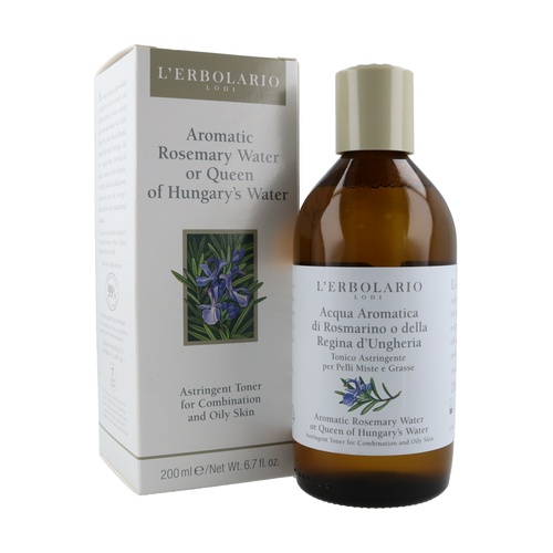 Acqua Aromatica Rosmarino Regina d'Ungheria Di L'Erbolario je tonikum zvláště vhodné pro mastnou pleť, protože po čištění dokáže odstranit všechny nečistoty a regulovat kožní maz.