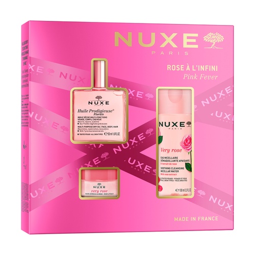 Nechte se unést 100% růžovou rutinou! Květinový koktejl tří jemných péčí. Tento růžový balíček péče o pleť obsahuje: Huile Prodigieuse® Florale 50 ml, Very Rose Micelární vodu zklidňující 3 v 1 100 ml, Very Rose Růžový balzám na rty 15 g. Péče formulovaná a vyrobená ve Francii.