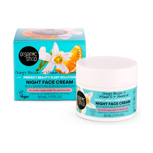 Noční pleťový krém Organic Shop je účinným řešením pro dosažení bezchybného jasu po probuzení. Formulován s ingrediencemi jako je mandlový olej, změkčuje, hydratuje a obnovuje elasticitu pokožky během noci, podporujíc mladistvý a zářivý vzhled pleti ráno.