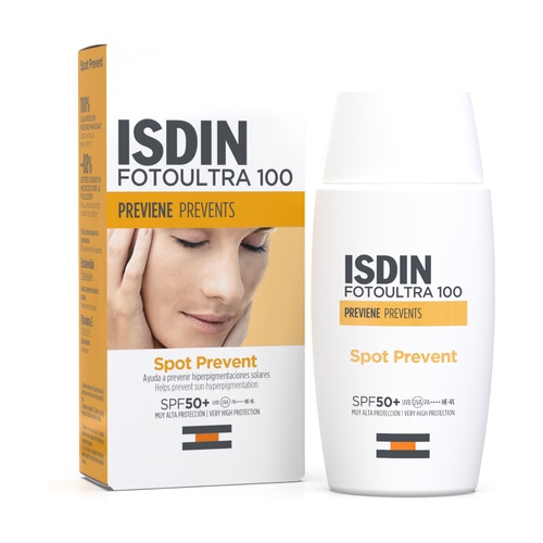 FotoUltra 100ISDIN Spot Prevent Fusion Fluid bojuje proti účinkům slunečního záření na pokožku, zabraňuje pigmentovým změnám způsobeným sluncem a chrání váš obličej.