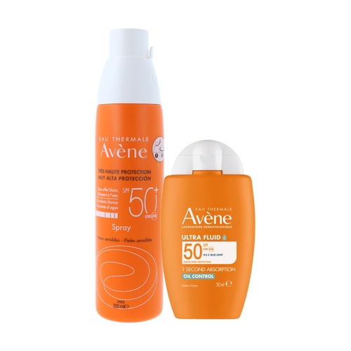 Balíček Sprej na opalování SPF 50+ a Ultra tekutý ultra matný opalovací krém SPF50+ od Avène.
