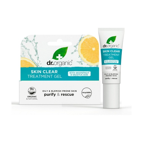 Organic Skin Clear Treat Gel od Dr. Organic je dermatologicky testovaný gel speciálně formulovaný pro cílené ošetření skvrn, nedokonalostí a ucpání pórů.