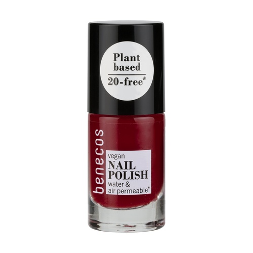 Lak na nehty, Cherry Red od Benecos je založen až z 90 % na složkách přírodního původu, které pocházejí z obnovitelných přírodních surovin.