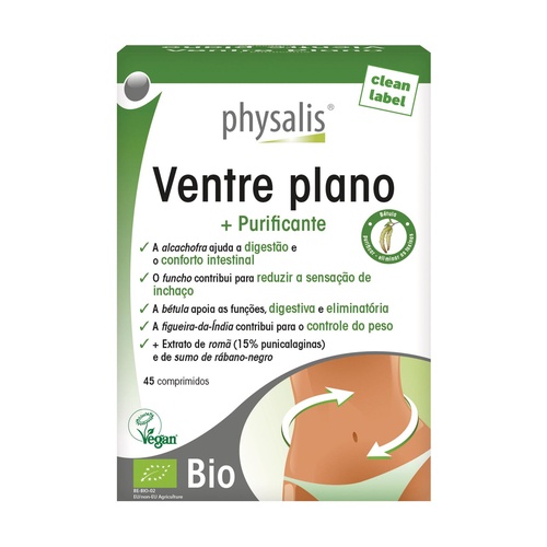 Vientre Plano Bion de Physalis je doplněk stravy na rostlinné bázi. Physalis Vientre plano bio je kompletní formule s cennými extrakty z bio rostlin, mimo jiné artyčoky, která přispívá k trávení a střevní pohodě.