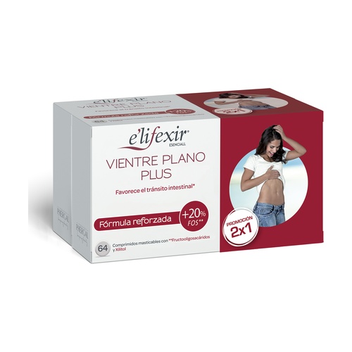 Elifexir Vientre Plano Plus je doplněk stravy, který pomáhá cítit se lépe ve své postavě. Nutrikosmetika, kterou můžete mít vždy u sebe a užívat kdykoli chcete, protože jsou to žvýkací tablety s mátovou příchutí. Tablety Vientre Plano jsou formulovány s xylitolem a fruktooligosacharidy, typem rozpustné vlákniny přirozeně přítomné v ovoci a zelenině, která podporuje střevní průchod.