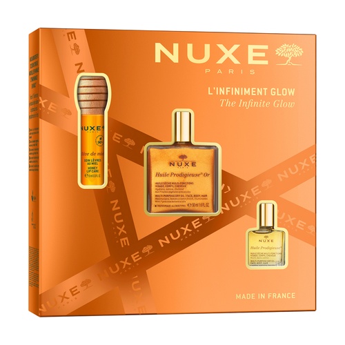 Nechte se okouzlit 3 nezbytnými péčemi pro rozjasnění vaší každodenní rutiny s tímto zářivým dárkovým setem: Huile Prodigieuse® Or 50 ml, Huile Prodigieuse® 10 ml, Rêve de Miel balzám na rty s medem 10 ml. Péče formulovaná a vyrobená ve Francii.