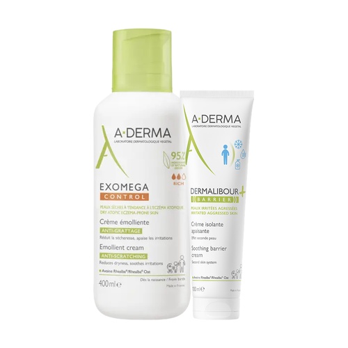 Balíček Exomega Krém + Exomega gel 2 v 1 od A-Derma obsahuje Exomega control krém emolient proti podráždění 400 ml + Dermalibour+ Regenerační krém 100 ml.