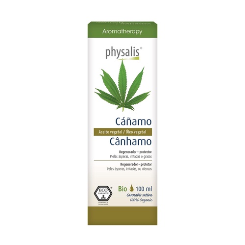 Bio konopný olej Physalis je suchý olej olivově zelené barvy, získaný ze semen konopí a výjimečně bohatý na esenciální mastné kyseliny, zejména linolovou a alfa-linolenovou (ω6 a ω3) v ideálním poměru 3 ku 1. Regenerační a ochranný. Ideální pro drsnou, podrážděnou nebo mastnou pokožku.
