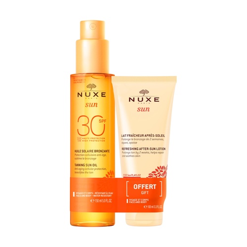 Opalovací olej s vysokou ochranou SPF30 na obličej a tělo: účinně chrání obličej a tělo před slunečními paprsky a zároveň podporuje opálení. Díky exkluzivnímu patentovanému filtračnímu systému zajišťuje širokospektrální ochranu proti UVA a UVB paprskům a předchází předčasnému fotostárnutí pokožky díky dvojí účinnosti proti UVA paprskům. Jeho neodolatelná textura vyživuje a rychle se vstřebává, nezanechává mastný film a zkrášluje opálení neuvěřitelně saténovým finišem.