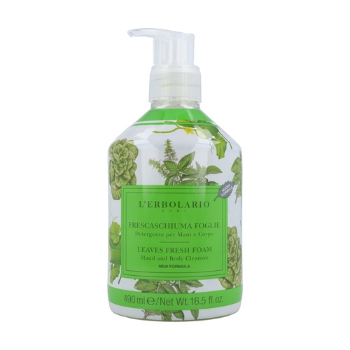 FrescaSchiuma Listy Di L'Erbolario tolik měkké pěny se zelenou vůní listů pro všechny příležitosti, kdy je důležité rychle očistit ruce a tělo.