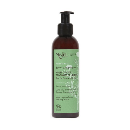 Tekuté medové mýdlo z Aleppa kombinuje starodávné syrské řemeslo výroby aleppského mýdla s jemností medu. Výživná, zjemňující a obnovující péče, med podporuje hydrataci pokožky, chrání ji a zmírňuje podráždění.
