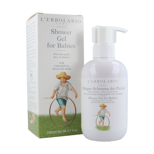 Zvláštní citlivost dětské pokožky, která ještě nevyvinula své obranné schopnosti, vyžaduje použití výjimečných čisticích prostředků. Náš sprchový gel je formulován na velmi jemném mycím základu: obsahuje rostlinné a cukerné složky, obohacené rýžovými proteiny, které dokážou vytvořit na pokožce ochranný film, a extrakty ze slézu a měsíčku, známé svými zjemňujícími a osvěžujícími vlastnostmi.