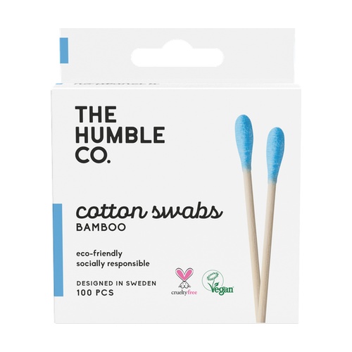 Humble Natural Vatová Tyčinka - Modrá v balení po 100 od Humble Brush je vyrobena z bambusu a organické bavlny. Je stejně užitečná jako její plastový ekvivalent, ale bez jakéhokoli škodlivého dopadu.