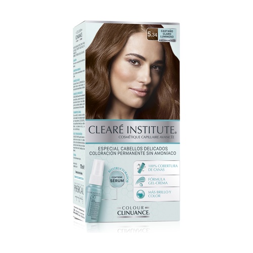 Barva Colour Clinuance 5.34 Světle hnědá lesklá jemná od Cleare Institute je krémová trvalá barva speciálně pro jemné vlasy, která posiluje vlasy.