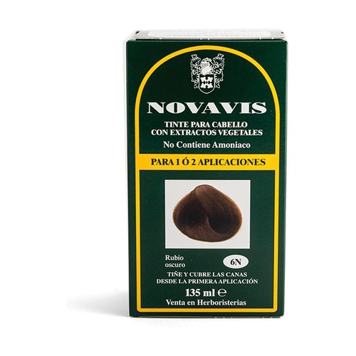 Rostlinná barva 6N tmavý blond od Novavis je trvalá gelová barva na vlasy. Vyrobena bez amoniaku, kryje šediny již při první aplikaci, jemně barví bez poškození struktury vlasů.
