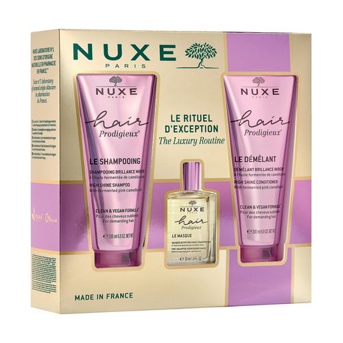 Proměňte své vlasy s Hair Prodigieux® díky posilujícímu účinku fermentovaného oleje z růžové kamélie. Obsahuje výživnou masku před šamponem, šampon pro zářivý lesk a kondicionér pro zářivý lesk.
