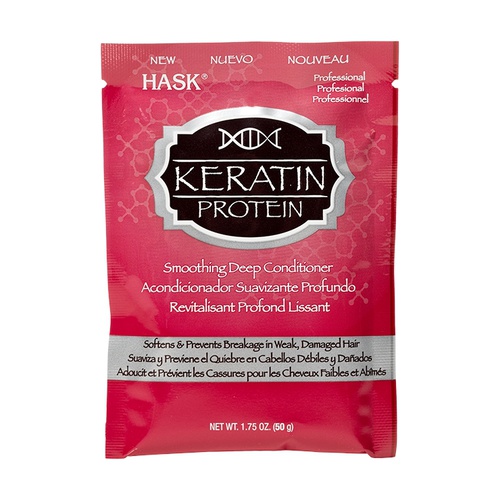 Hluboce vyživující keratinový proteinový kondicionér v sáčku od Hask je ultra-regenerační vyhlazující kúra, která zanechává všechny typy vlasů hydratované, lesklé a bez krepatění. Keratin pomáhá opravovat poškození, snižuje lámavost a statickou elektřinu. Perfektní pro přetížené a barvené vlasy.
