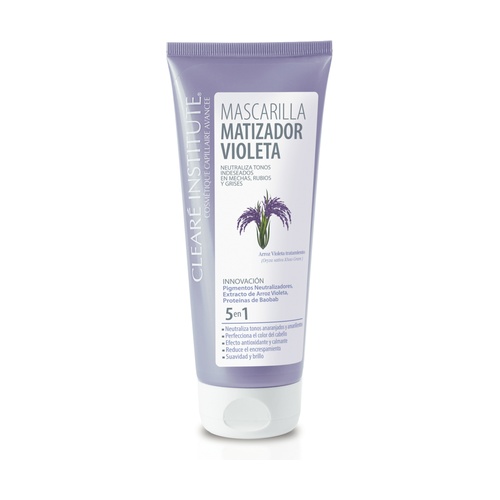 Fialová tónovací maska 5 v 1 od Clearé Institute je péče formulovaná s pigmenty a rostlinnými extrakty, které rozjasňují vlasy a oživují je.