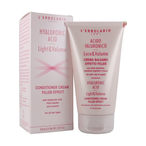Krémový balzám s fillerovým efektem od L'Erbolario je balzám pro všechny typy vlasů s kyselinou hyaluronovou, rostlinnou keratinou a kokosem, pro vlasy s objemem jako nikdy předtím a hluboce vyživené.