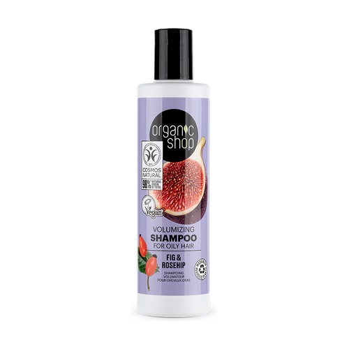 Objemový šampon na mastné vlasy s fíkem a šípkem od Organic Shop pomáhá vyrovnat hydrataci, aniž by odstranil přírodní oleje. Extrakt z organického fíku a organický olej ze šípku mají výživné vlastnosti, které pomáhají znovu vyvážit vlasy, kondicionují délky a zanechávají vlasy objemné.