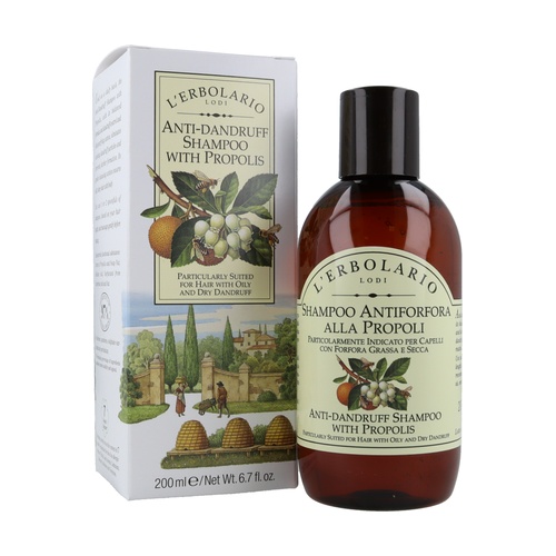 Šampon proti lupům s propolisem 2 v 1 od L'Erbolario, při pravidelném používání, šampon proti lupům s propolisem díky své vyvážené formulaci s deforforující a dermopurifikační aktivitou