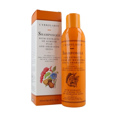 Shamposole Extrakty Semena Mandlovník/Lněné semínko/Amarant od Erbolario je jemný čisticí prostředek pro všechny typy vlasů, zmírňuje negativní účinky slunce, chloru a slané vody.