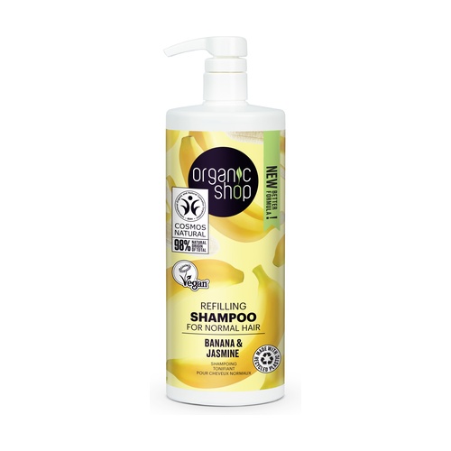 Regenerační šampon pro normální vlasy banán a jasmín od Organic Shop obsahuje směs ingrediencí, která učiní vaše vlasy atraktivními, sníží jejich lámavost a okamžitě obnoví hydrataci. Organický extrakt z banánu a organický extrakt z jasmínu zvlášť pečují o vaše vlasy, intenzivně je hydratují a zanechávají je jemné a pružné.