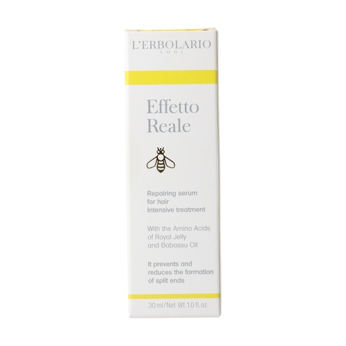 Intenzivní ošetření Siero Effetto Reale Di L'Erbolario, které předchází a snižuje tvorbu roztřepených konečků. S aminokyselinami mateří kašičky a olejem Babassu