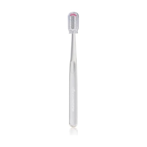 Ekologický zubní kartáček s rukojetí vyrobenou z obnovitelného zdroje – dřevní buničiny –, s měkkými štětinami, které nepoškozují sklovinu ani nedráždí dásně.