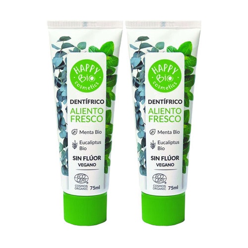 Zubní pasta Happy Bio s čerstvou mátovou příchutí bez fluoridu je zubní pasta, která pečuje o zuby a dásně, zanechává ústa extra svěží a chráněná díky mátě. Čerstvá příchuť máty a eukalyptu. Vhodné pro vegany.