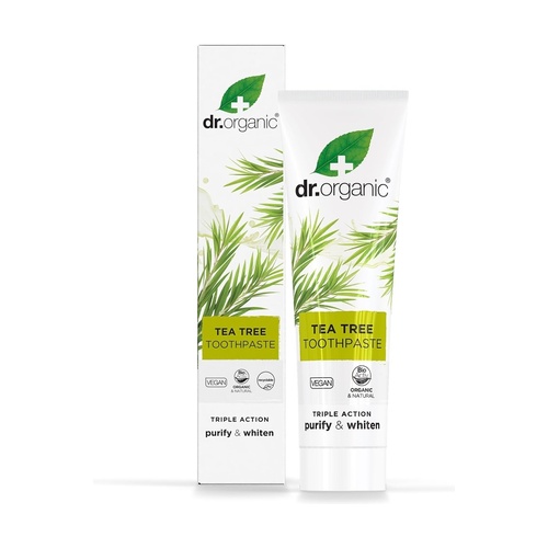 Zubní pasta s organickým čajovníkem od DrOrganic, která používá nejčistější organický a bioaktivní čajovníkový olej, pečlivě mícháme tento výjimečný čisticí esenciální olej s jedinečnou formulací bioaktivních extraktů, navržených tak, aby ústům poskytly pocit čerstvé a přirozeně čisté máty. Vhodné pro vegany.