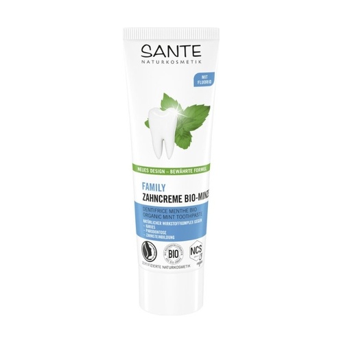 Rodinná zubní pasta s mátou a fluorem od Sante pečuje a chrání zuby a dásně a zanechává svěží dech. Obsah fluoridu sodného: 1200 ppm.