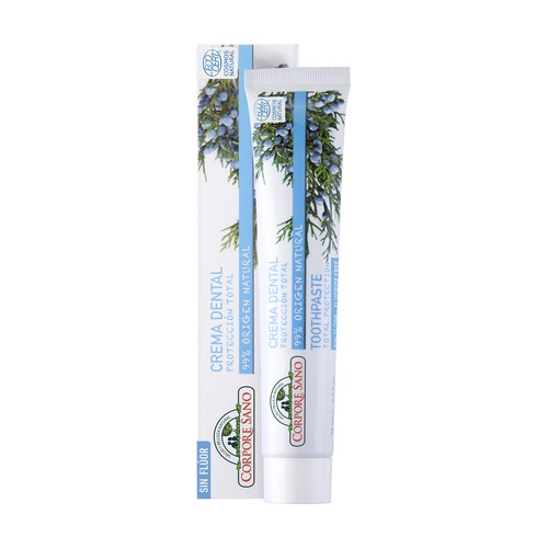 Zubní pasta Ochrana celková COSMOS má certifikovanou +99% přírodní recepturu navrženou tak, aby poskytovala kompletní ochranu zubům a dásním.