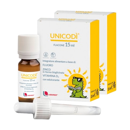 Pack Bambini Unicodì je potravinový doplněk obsahující zinek ve formě bisglycinátu, fluor a vitamín D3. Fluor přispívá k udržení zubů. Fluor přispívá k udržení mineralizace zubů.
