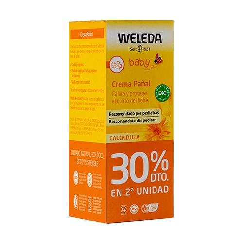 Balení krému na plenky s měsíčkem od Weledy. Přírodní ochranný krém s extraktem z bio měsíčku lékařského, který uklidňuje a chrání citlivou pokožku v oblasti plenek.