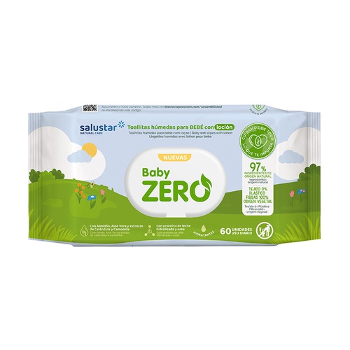 Dětské vlhčené ubrousky s BabyZero lotion od Salustar, s 100% přírodními vlákny a 97% přírodními složkami.
