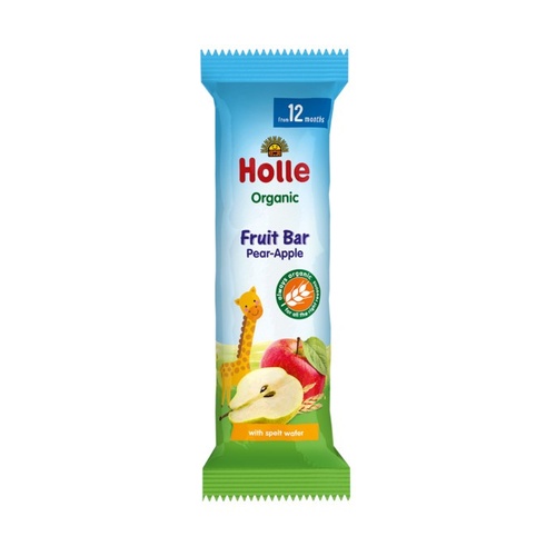 Organická ovocná tyčinka s hruškou a jablkem od Holle je vhodná jako svačina a kousací svačina. Děti ji budou moci snadno uchopit díky její praktické a snadno ovladatelné velikosti. Tyčinka je pokryta tenkou vrstvou celozrnného špaldového chleba bez kvasnic, aby dobře padla do dětské ruky a nelepila se.
