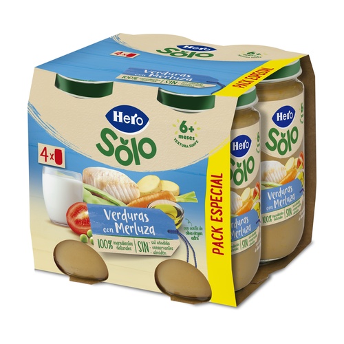 Sklenice zeleniny a tresky od Hero pro přirozenou a výživnou stravu od 6 měsíců. Bez palmového oleje, škrobu a přidané soli.
