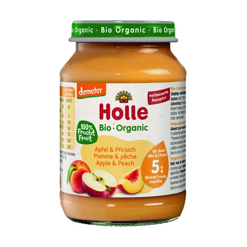 Bio jablečno-broskvový příkrm Tarrito Manzana y Melocotón Bio od Holle je lahodný dezert, 100% ekologický, doporučený od 4 měsíců věku kojenců a batolat. Je součástí zdravé a vyvážené stravy. Je to vhodný způsob, jak postupně přizpůsobit dítě k přijímání hustší stravy.
