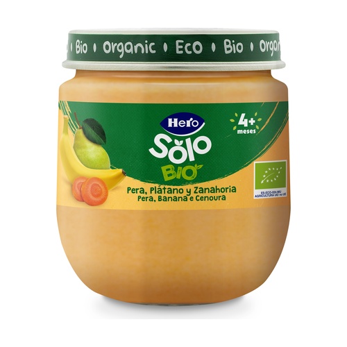 Složení Sklenička hruška, banán, mrkev 4m+ hero solo bio