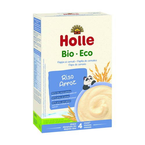 Organická bezlepková rýžová kašička Holle je produkt, který je součástí smíšené stravy. Vhodný po čtvrtém měsíci, pokud pediatr neurčí jinak.