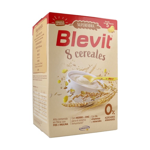 Blevit® Superfibra 8 obilovin obsahuje 90 % obilovin (pšenice, rýže, kukuřice, žito, celozrnný oves, pohanka, špalda, ječmen), navíc přináší vitamíny, minerály a vysoký obsah vlákniny.