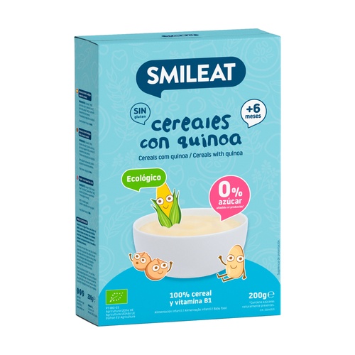 Ekologická bezlepková obilná kaše s quinoou od Smileat na bázi pohanky, kukuřice, rýže a quinoy. Lahodná, vyvážená a výživná kaše, 100 % ekologická, je bezpochyby perfektní volbou, jak začít jíst zdravě a růst silný. 99,9 % nehydrolyzovaných obilovin + vitamín B1