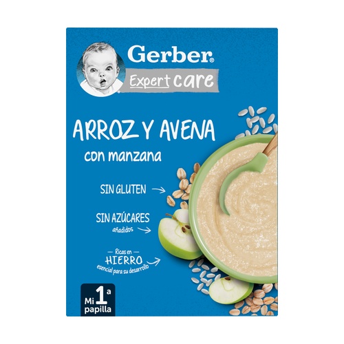 Příprava kaší ke krmení lžičkou: Umyjte a osušte si ruce před přípravou jídla pro vaše dítě a použijte čisté nástroje. Nejprve nalijte do misky/talíře 160 ml vlažného mléka (mateřské mléko nebo mléko, které dítě pije). Přidejte 25 g (3 nebo 4 polévkové lžíce cereálií Gerber). Promíchejte vidličkou a zkontrolujte teplotu před krmením dítěte. Po přípravě kaši ihned použijte bez nutnosti vaření. Raději v lahvičce? Přidejte do lahvičky s mlékem* množství cereálií doporučené pediatrem podle věku dítěte. Lahvičku otočte v rukou a protřepejte, dokud nedosáhnete homogenní směsi. Hotovo!Složení Kaše z rýže, ovsa a jablka, pro děti od 6 měsíců, bez lepku